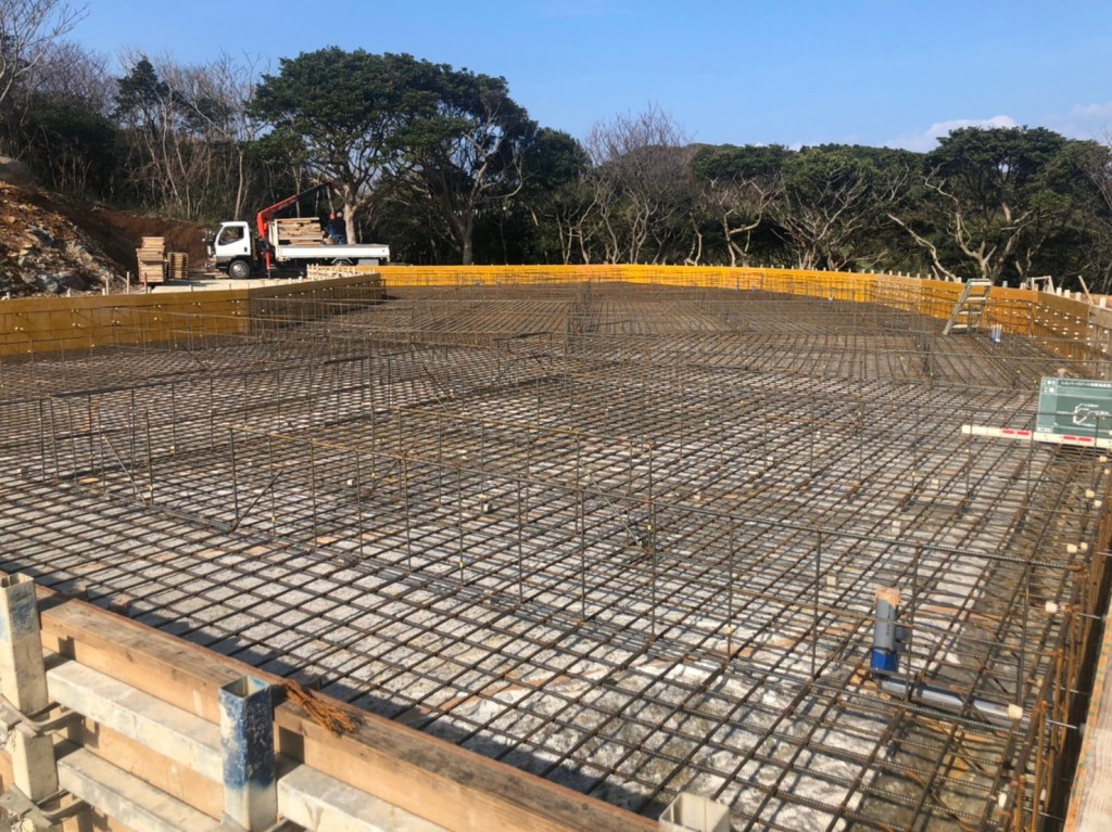 唐津の加部島に建設中 唐津市呼子町加部島にシルバーリゾート建設中です。”呼子”と言えば、”イカ”、”呼子の朝市”、”風の見える丘公園”、”呼子大橋”かな。呼子大橋は平成元年開通。全長728m、弦楽器のハープを2つ並べたようなフォルムでハープ橋とも言われます。渡ると幸せになるという”しあわせの橋”の通称も持っていて、平成10年に”新さが百景”にノミネート。呼子大橋の下に見える”弁天島の呼子岩脈群”は平成14年”佐賀県天然記念物”に認定されています。その橋を渡って、呼子の北端に位置する加部島の北側に建設地があります。”活魚料理かべしま”さんの向かい側。建設地に向かう道の途中に、永遠と真っ直ぐで、波打っている趣深い道があって、是非この道を見て欲しい。のんびりした雰囲気の自然豊かな場所です。 地鎮祭の様子 敷地からの景色 基礎配筋を終えて基礎立上りの型枠が入ったところ
