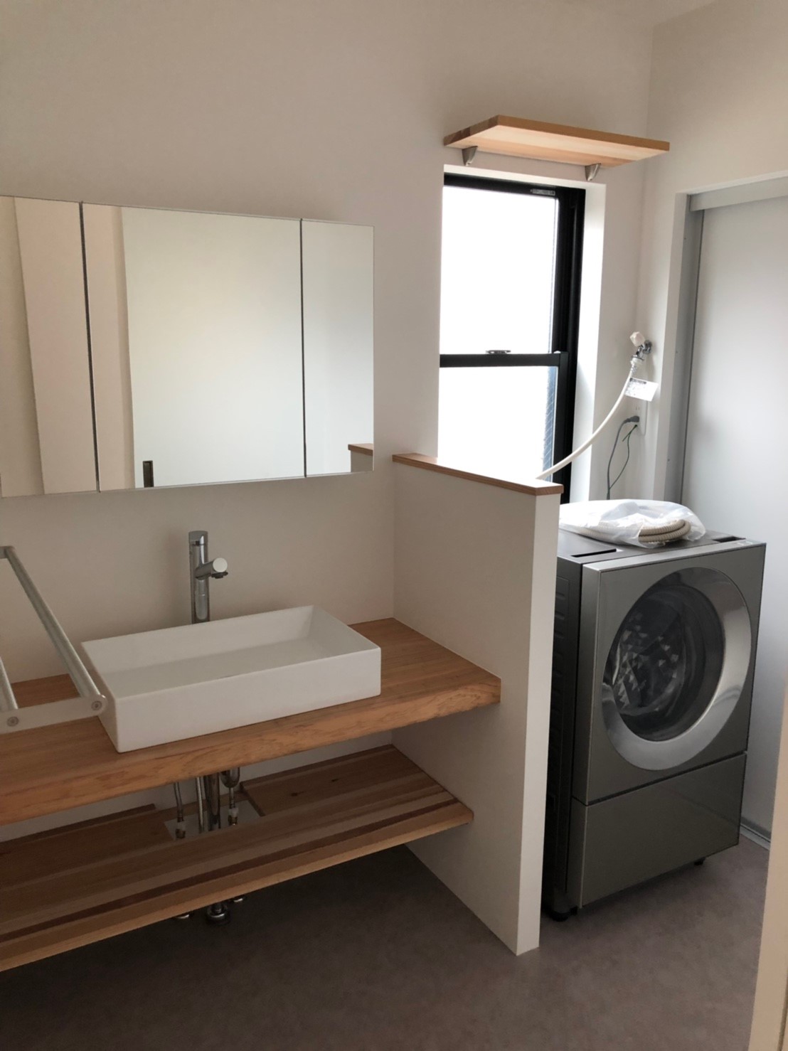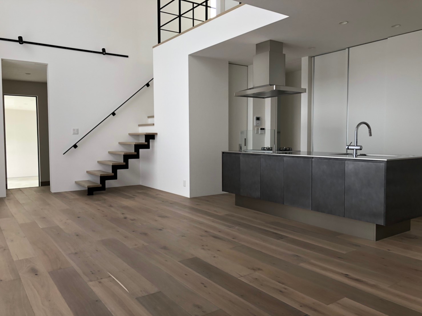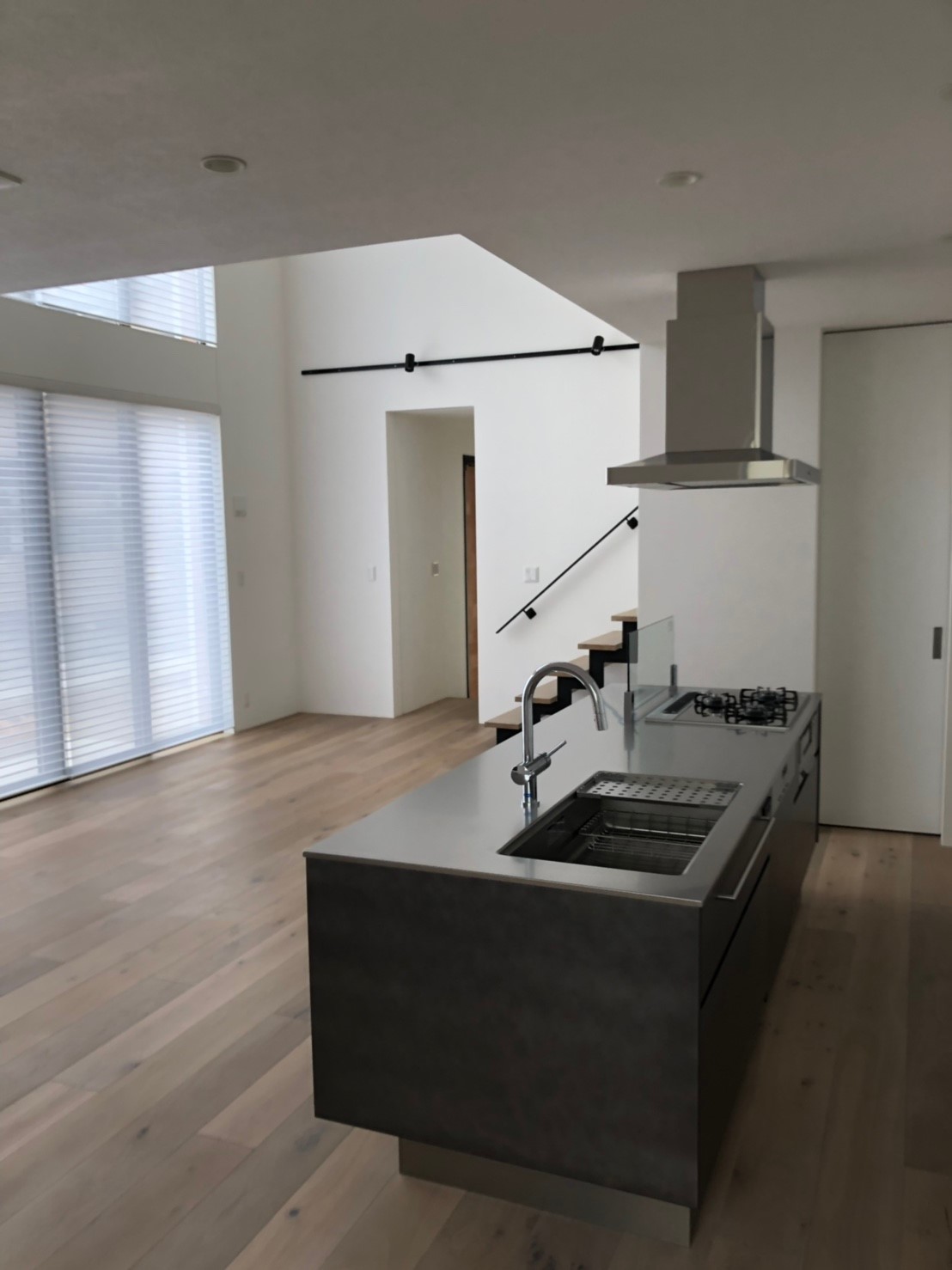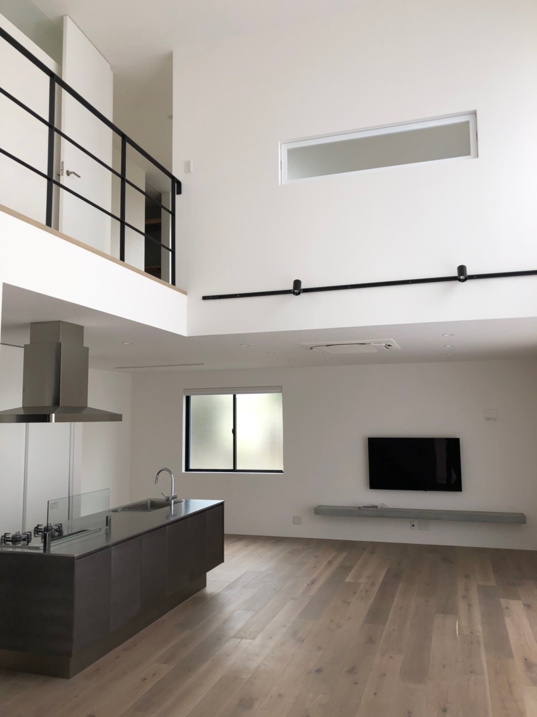 美野島の家 商店建築デザインの安河内商店さんデザイン。安達文男建築工房の安達先生の設計です。リビングダイニングキッチンの豪快な吹抜けと大きなサッシが存在感あります。 物件データ 建築工法 2階木造 設備・仕様 W・I・C,パントリー,システムキッチン,ウォシュレット 1階床面積 118.61㎡(35.9坪) 2階床面積 51.75㎡(15.6坪) 延床面積 170.36㎡(51.5坪)